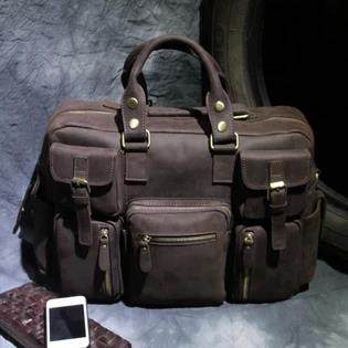 复古男士手提疯马皮真皮行李袋大容量单肩牛皮旅游旅行包短途出差|ms